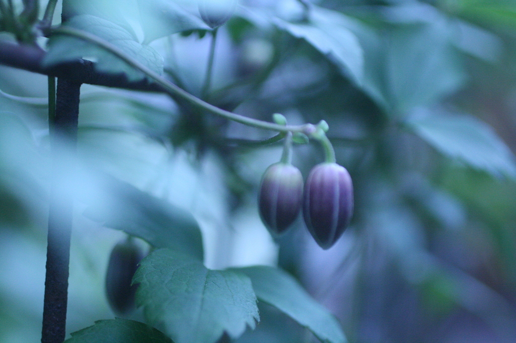 幻想的で綺麗な写真ですね。てっせんのつぼみは下向きにさがっているんですね。なるほど。