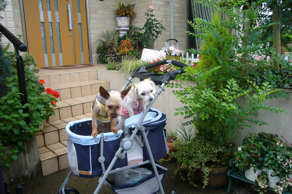 仲良く二人乗り~♪ 玄関前の鉢の飾り方が素敵ですね^^