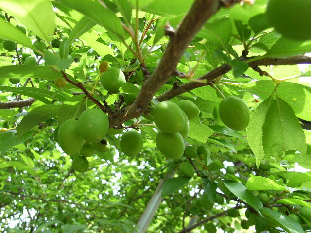 毎年、この頃になると、スモモがこんな感じでたわわに実をつけているのですが、今年は受粉するまえに、野鳥が花の蜜を食べに来てしまって、ほぼ全滅っ(T_T)!てんさんっ、働きが足りんっ!もっと”フレッシュおやつ”を食べて、来年のスモモ作りに貢献しなさいっ(-"-)