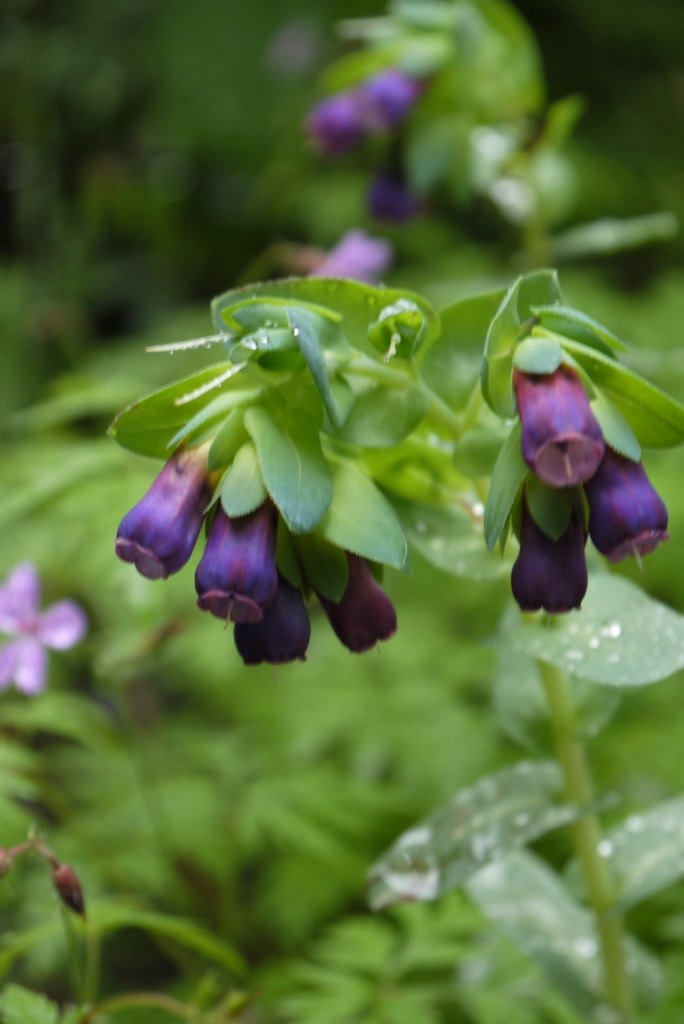 きれいな紫ですね。花や葉の形に特徴のある、これはもしやブルンネラではなくセリンセではないですか?たぶん・・・どちらも大好きな花です。