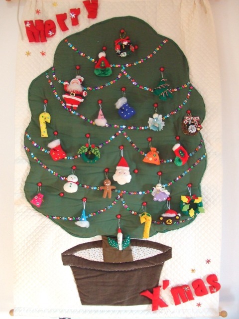幅100㎝縦120㎝の大きいモノで飾りはフエルトで作りました。