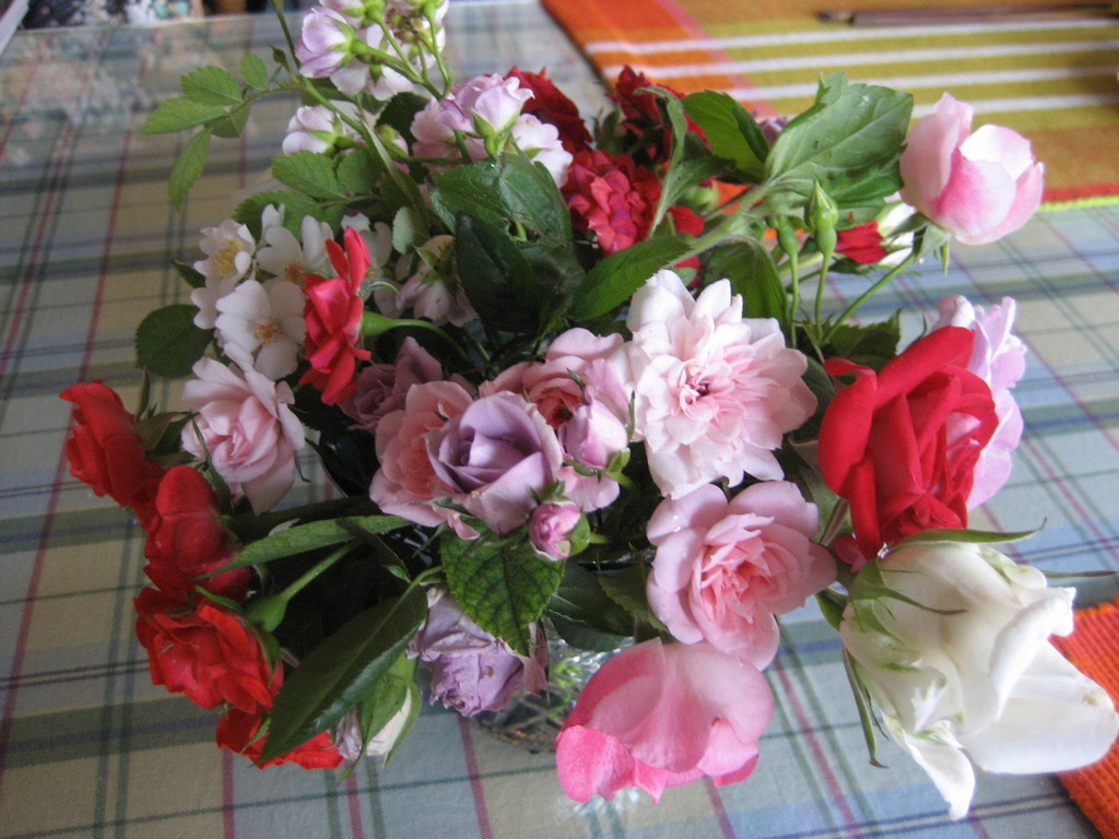 きれいなバラがたくさん咲いているんですね。お嬢さんからの贈り物なら咲いた時の喜びも一入ですね。お家のバラでこんな風にアレンジするのは本当に豊かで幸せなひと時ですね♪