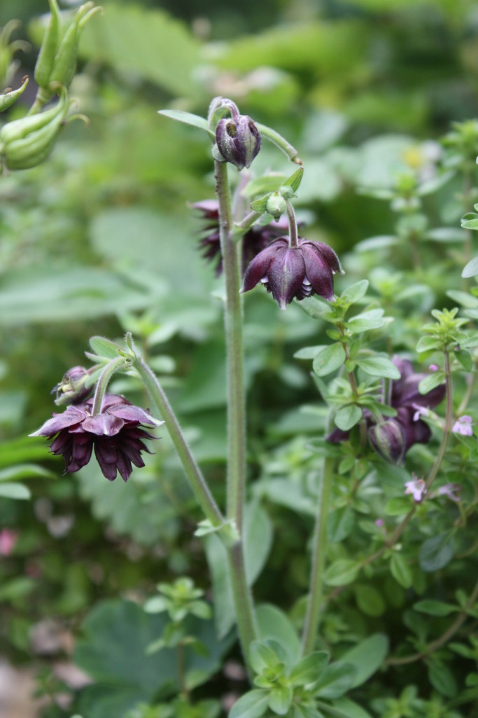 ブラックバロウ、私もお揃いですよ~。深い色がとてもシックなオダマキですよね。うちのはもう花が全部終わってしまい、種を採るため花柄摘みをグッと我慢しています。あれ?蕾に穴が・・?オダマキを食べるのは誰だろう?