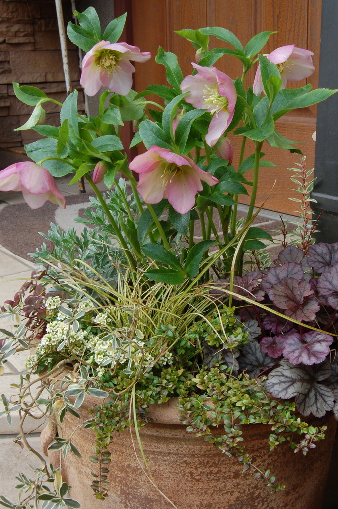 クリスマスローズの寄植えです。ヒューケラなどを入れて