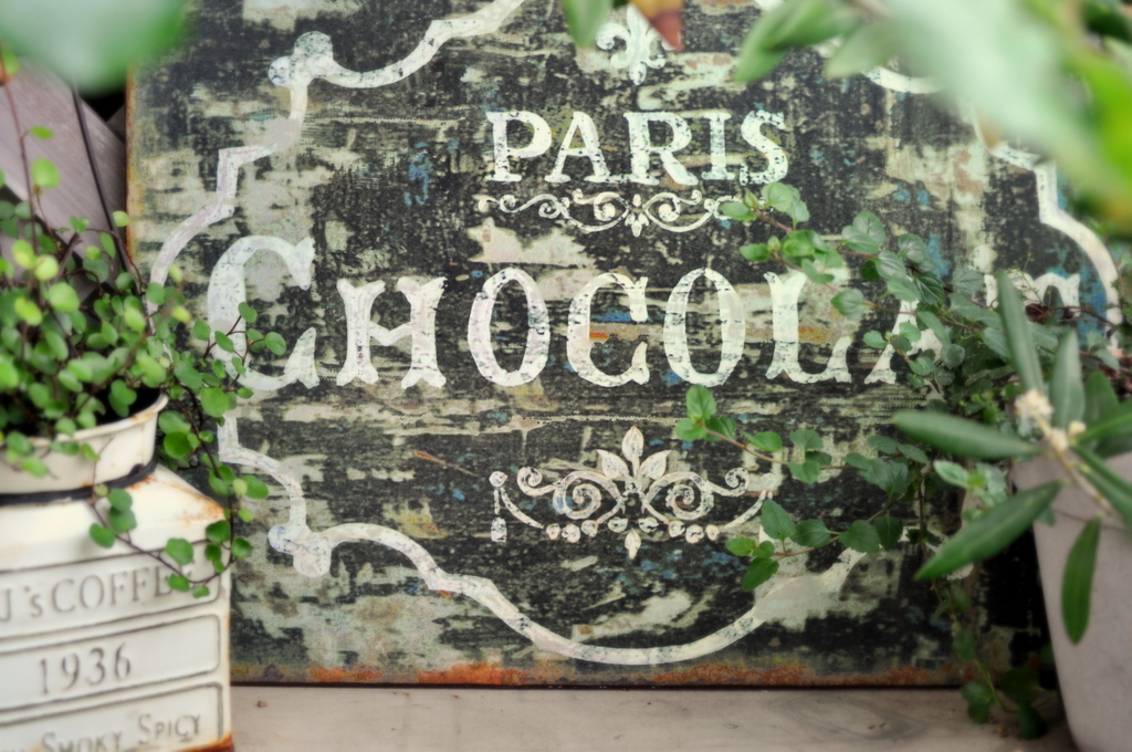 この看板(?)素敵ですね!アンティークですか?それともお手製ですか?グリーンに映えますね♪