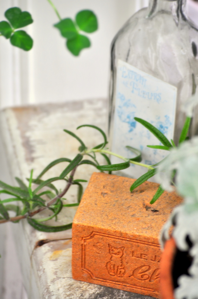可愛いレンガ^^ クローバーとローズマリーとビンの構図も素敵です^^!