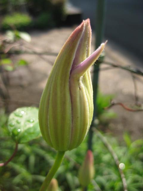 二番目に開花予定のクレマチス。咲いてみないとお姿がわかりません。嬉しい予感。
