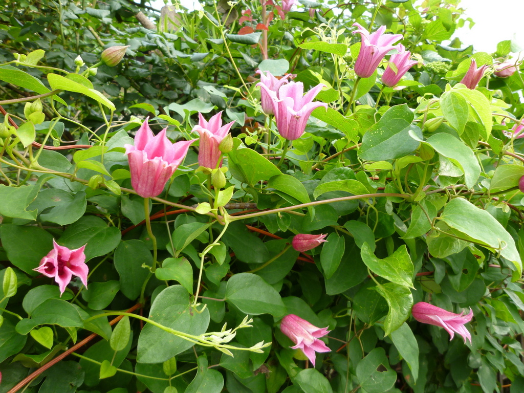 可愛い形のクレマチスですね。こんな風に自然な感じで木に絡んでいる姿とてもいいです。とっても元気そう!