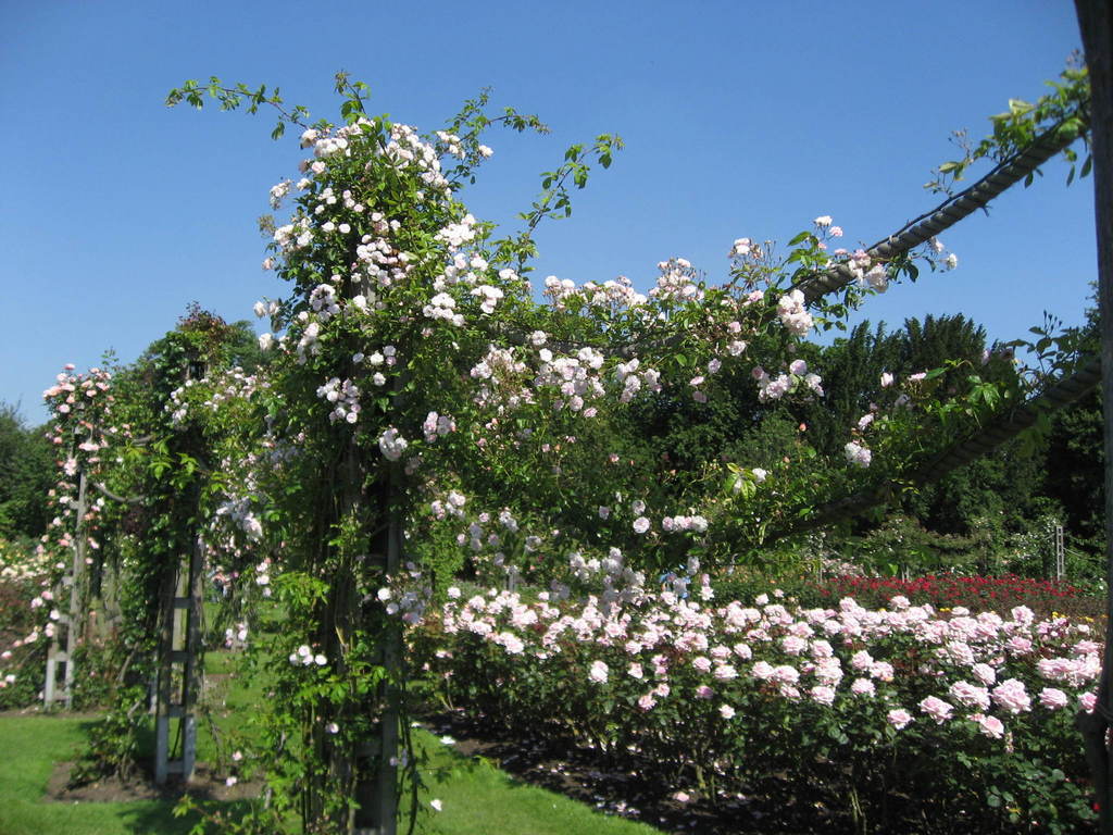このお写真待っていました♪このロープ使い、とっても興味がありますので。でも、この太さのロープはやはり見つかりませんでした。大きな公園だから、この太さが似合うのかもしれませんね。このつるバラの種類は何かわかりますでしょうか?