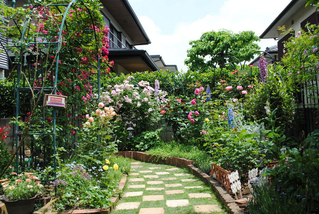 お花がいっぱい、よく咲いていますね♪とても手作り感のある暖かみあるお庭ですね。私も市松模様いいなぁって思いました。