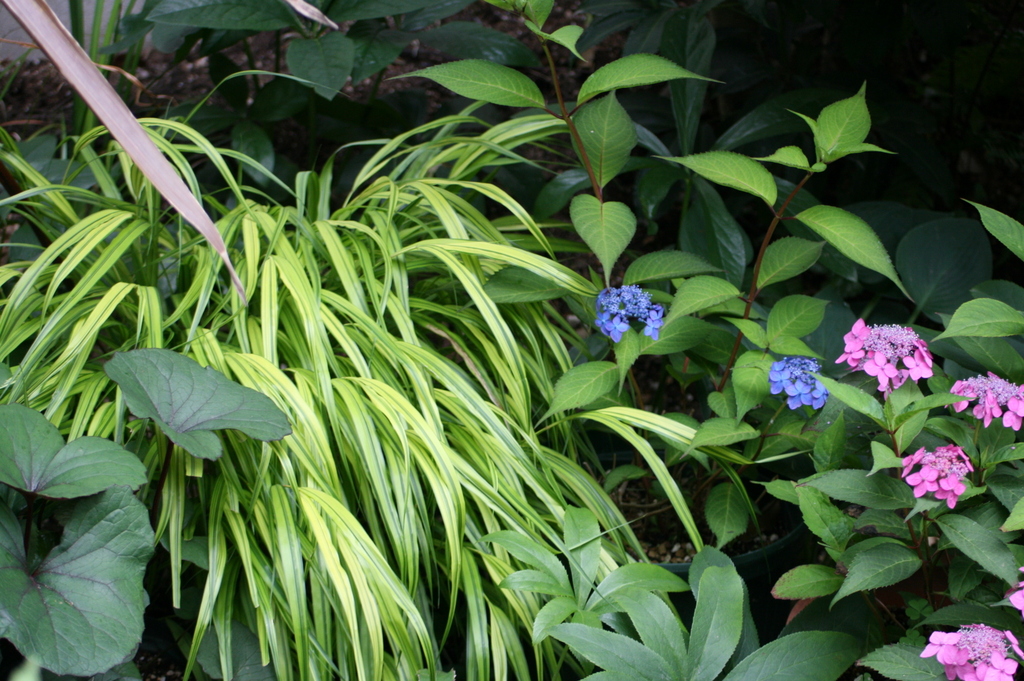 山あじさい鉢で育ててらっしゃるんですね^^ 風知草やギボウシとの組み合わせが素敵です♪