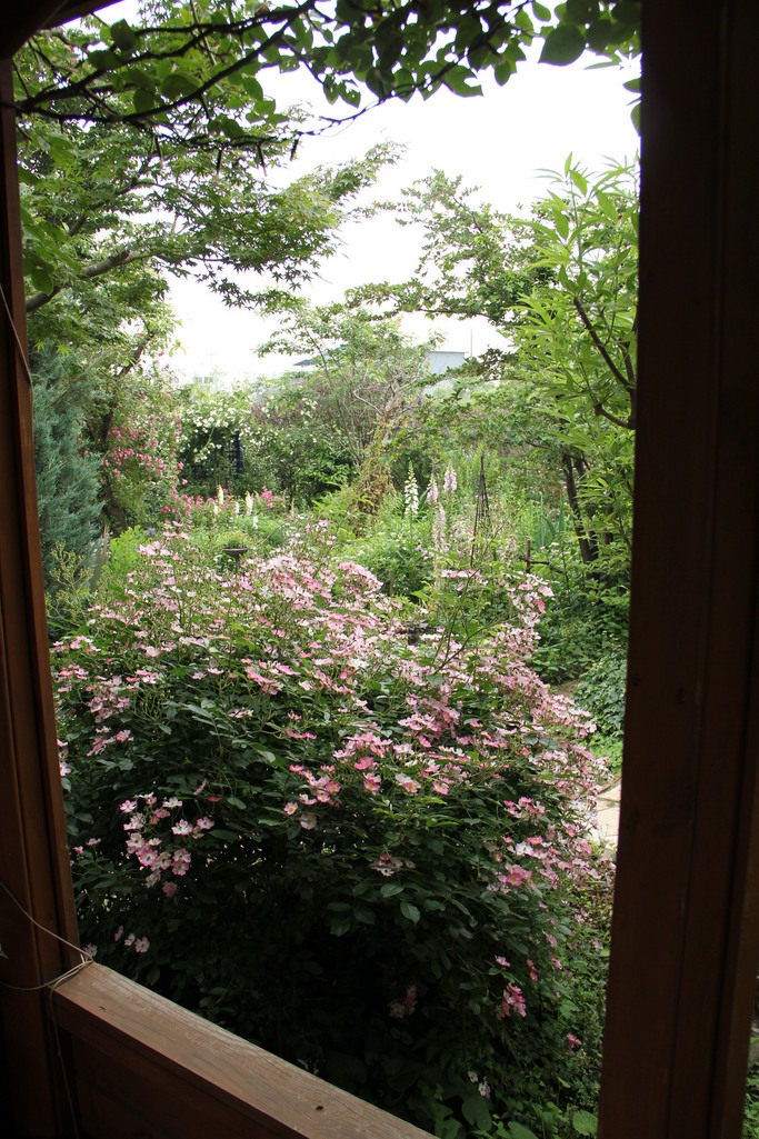 窓枠などの写真って額入り風景写真に見えて大好きです、庭も植物が元気に競い合いナチュラル感がありますね。