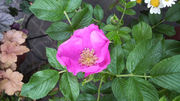 イングリッシュローズの”レディ エマ ハミルトン”(中央右の銅色の葉)と、つるバラの”のぞみ”(左側の石垣上で枝垂れているバラ)です。蕾が沢山ついているので、10日ほど後の見ごろが楽しみです。春から一度も薬剤散布などしていなかったのですが、先日株本にオルトランをまきました。うちではたとえバラでもこれ以上の手入れはしません。